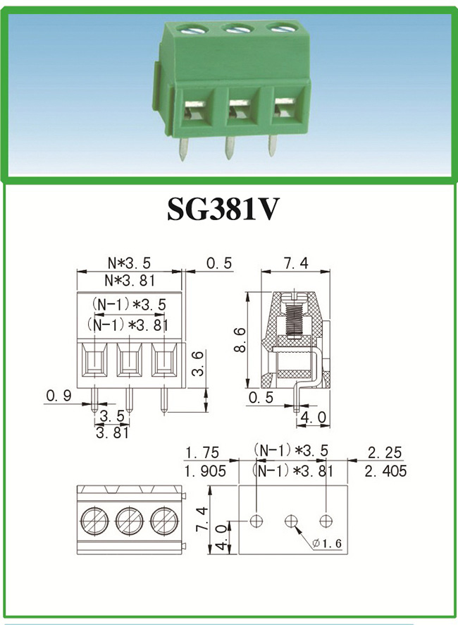 間距上提供,3.5mm,3.81mm,5.0mm,5.08mm,7.5mm,7.62mm等間距,安裝條件上,提供兩邊開(kāi)口,兩邊封閉,兩邊帶固定法蘭,等還有單排,雙排,穿墻,導(dǎo)軌是安裝,滿足客戶的不同需求。
