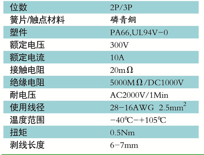 接線端子的絕緣材料用改性的尼龍(PA66),能達(dá)到或超過(guò)IEC947-7-1EN60947-7-1標(biāo)準(zhǔn),阻燃等級(jí)達(dá)到UL94,V-0具有良好的電氣性能和機(jī)械性能。螺絲用高強(qiáng)度的鋼制成鍍鋅或鎳處理,導(dǎo)電體四方針用合金銅制成表面鍍錫,壓片采用彈性及極強(qiáng)的磷青銅表面鍍錫或鎳;壓線框用抗應(yīng)力裂縫腐蝕的合金銅制成,這些金屬表面還鍍錫或鍍鎳加以保護(hù)。設(shè)計(jì)完全符合IEC60947-7-1.GB14048.7等標(biāo)準(zhǔn)。